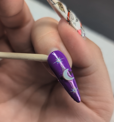 If you don't already have natural lifting around the seal of your nail, you can take the cuticle stick and gently (very gently!) create a gap by prying up the press-on. Try to find spots where the adhesive has already loosened up.