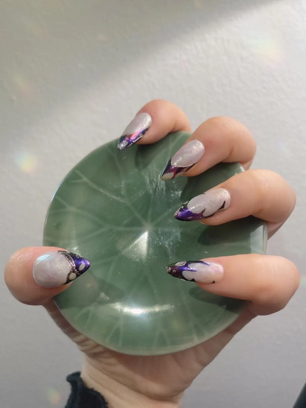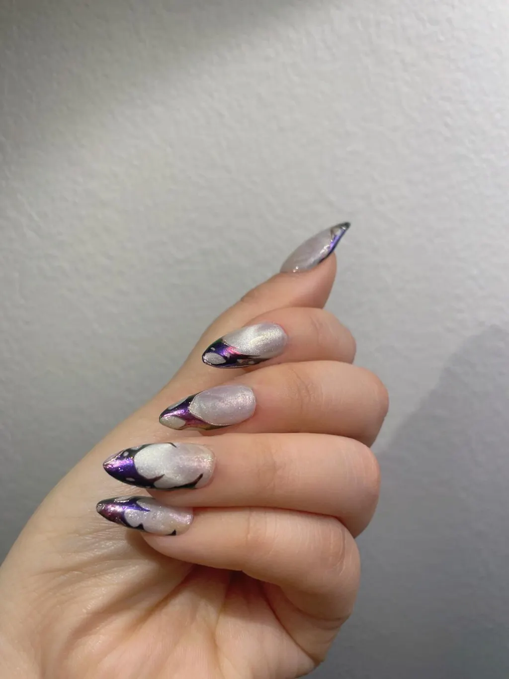 I asked for an Arcane series inspired custom set—and what I got was straight-up ART. Intricate webs, deep purple gemstone tones, shimmer that catches the light like enchanted crystal...Every nail feels so unique, and the vibes are hitting Arcane look and feel. I’m obsessed!