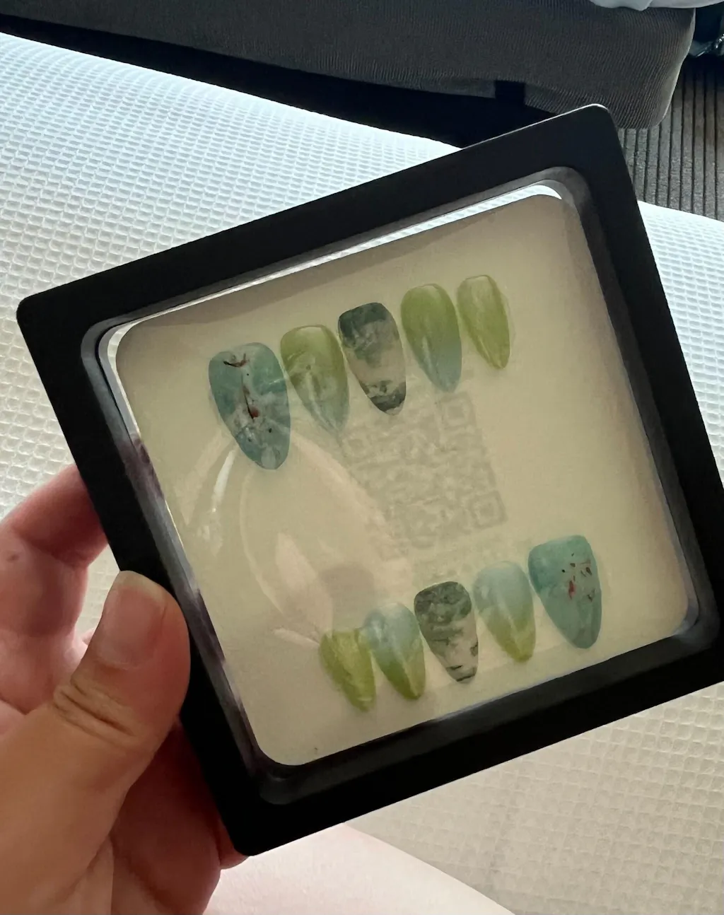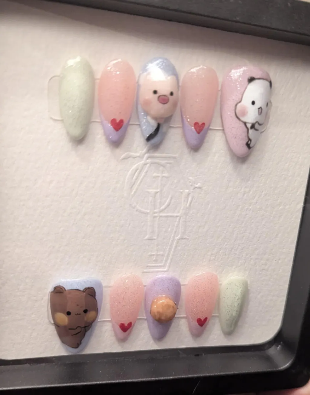 I bought these custom designed nails as a surprise for my wife and they turned out AMAZING! She doesn't wear nails often so trying to figure out what shape and size was a little daunting at first, but Lily made the process extremely easy through her detailed website guide. The custom design process was also streamlined and very collaborative. Lily kept me involved every step of the way, and while I provided her with inspo pictures, I gave her full creative control which she knocked out of the park!