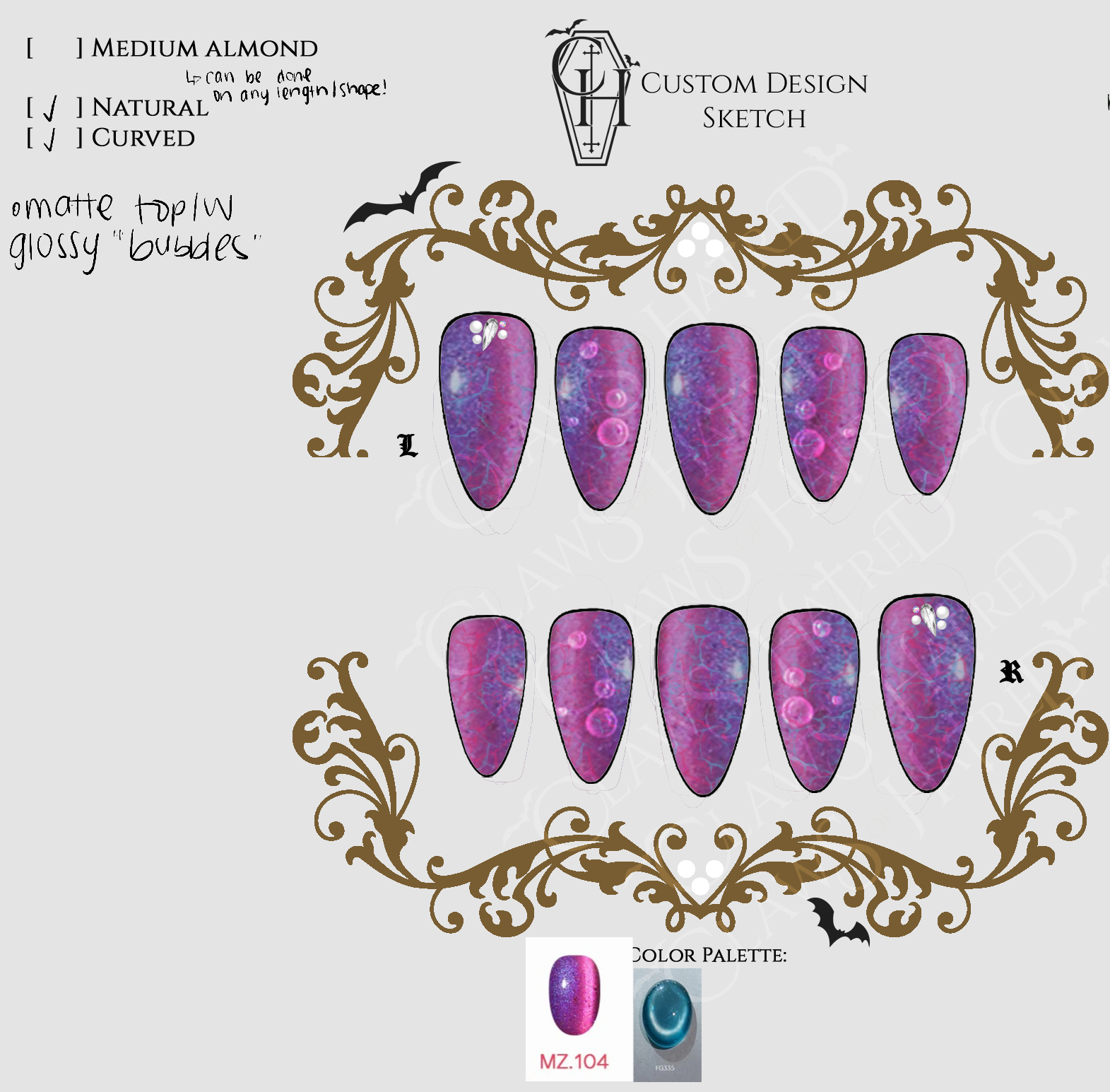 All Whispers designs are Tier 1, offering a more budget-friendly or minimalist approach to representing your main guy. They can be done in any shape/length!